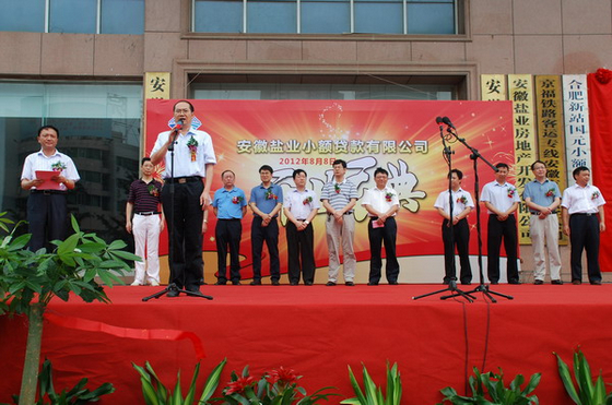 2012年8月8日上午,由公司參股的安徽鹽業(yè)小額貸款有限公司在安徽鹽業(yè)大廈舉行開(kāi)業(yè)慶典。公司副總裁方宗友、財(cái)務(wù)副總監(jiān)張來(lái)往應(yīng)邀出席慶典儀式。
