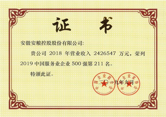 安糧控股位列2019中國服務(wù)業(yè)企業(yè)500強(qiáng)第211位