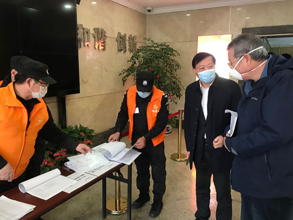 在盛安廣場一樓大廳,包總一行主動接受體溫測量和登記,現(xiàn)場檢查了測溫、消毒及人員進(jìn)出登記工作,聽取了現(xiàn)場工作人員的情況匯報,對他們的辛勤工作表示慰問和感謝,充分肯定了公司疫情防控工作。