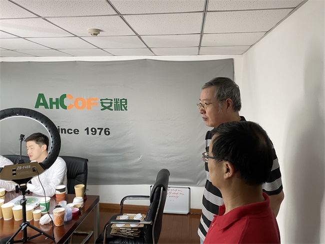 6月18日,127屆線上廣交會進入第四天,公司各直播場次正有條不紊、如火如荼地進行中。當天下午,安糧直播間迎來重量級探班嘉賓--國貿(mào)集團黨委副書記、總經(jīng)理包祥華。