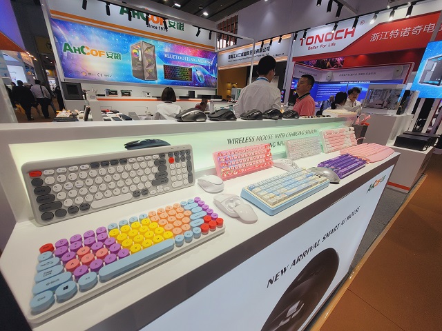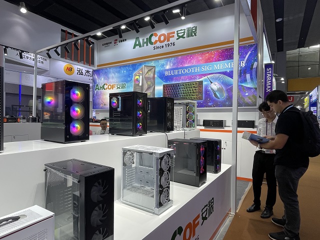 南方一部在本屆廣交會(huì)一期主要參展游戲電腦機(jī)箱產(chǎn)品,從入門(mén)級(jí)到高端游戲機(jī)箱齊全。部門(mén)在營(yíng)銷展示上采用一系列新穎的形式,展臺(tái)的主通道采用目前比較流行的魚(yú)缸游戲機(jī)箱作為看點(diǎn),用可藍(lán)牙連接手機(jī)和電腦的高端游戲機(jī)箱吸引客戶。為了突出參展效果,所有游戲機(jī)箱都裝上了RGB變色風(fēng)扇。多樣化的變色風(fēng)扇與南方二部的機(jī)械鍵盤(pán)吸引了大量客戶駐足觀看。消費(fèi)電子展6個(gè)攤位,突出游戲類產(chǎn)品的裝修風(fēng)格,搭配大氣的門(mén)頭、顯眼的海報(bào)燈箱,使客戶在進(jìn)館時(shí)只需一眼就能夠鎖定目光。
